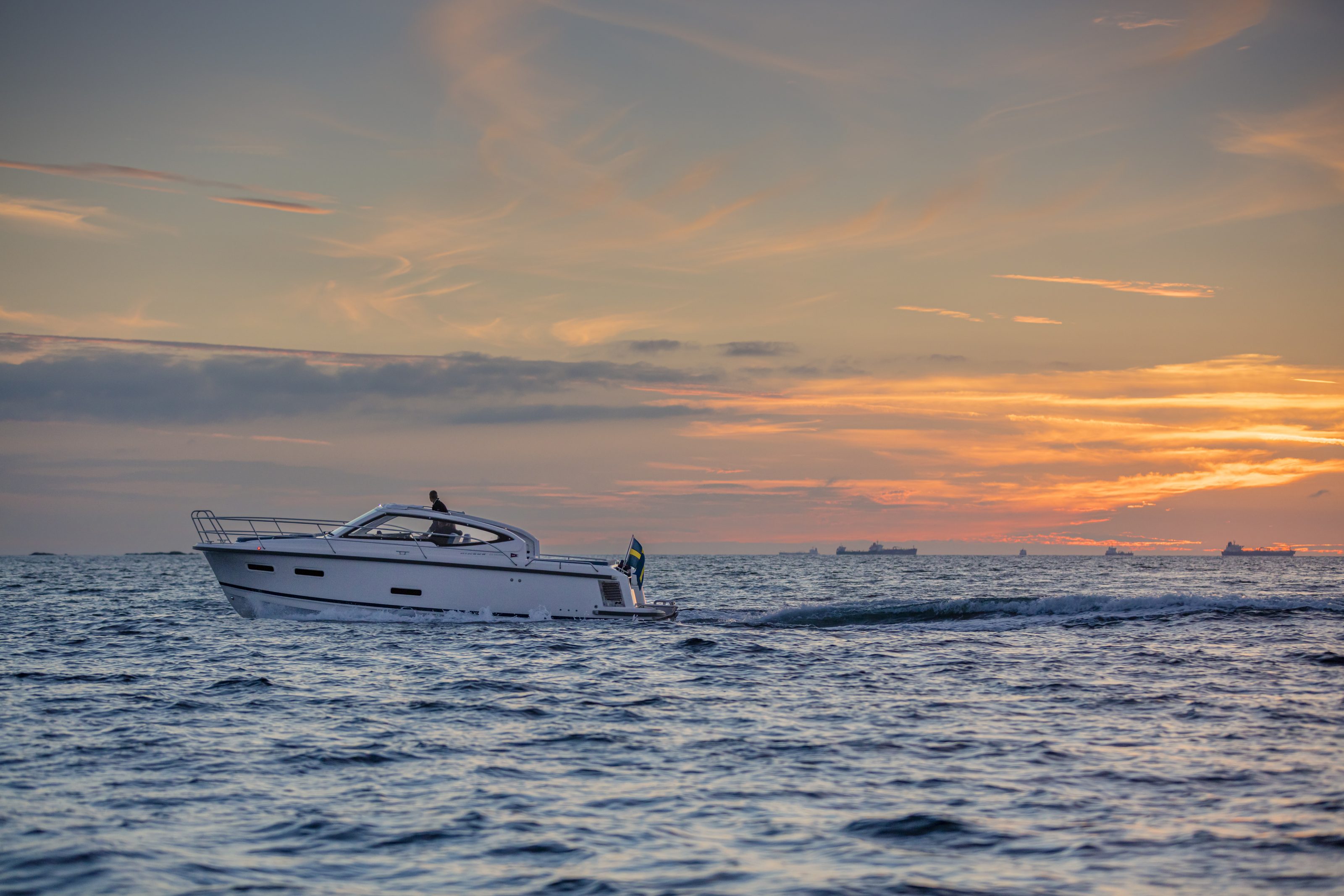 Smart Speed features a hull designed for comfortable ride at speeds from 0 to 22 knots. The hull has no distinct planing threshold and runs with good fuel economy at all speeds. Speed can be adapted to sea conditions, and this means higher safety, better comfort and the best possible way to experience the surrounding scenery. As it’s sister, the 305 Coupé, the boat can be fitted with electric engine from Torqeedo.