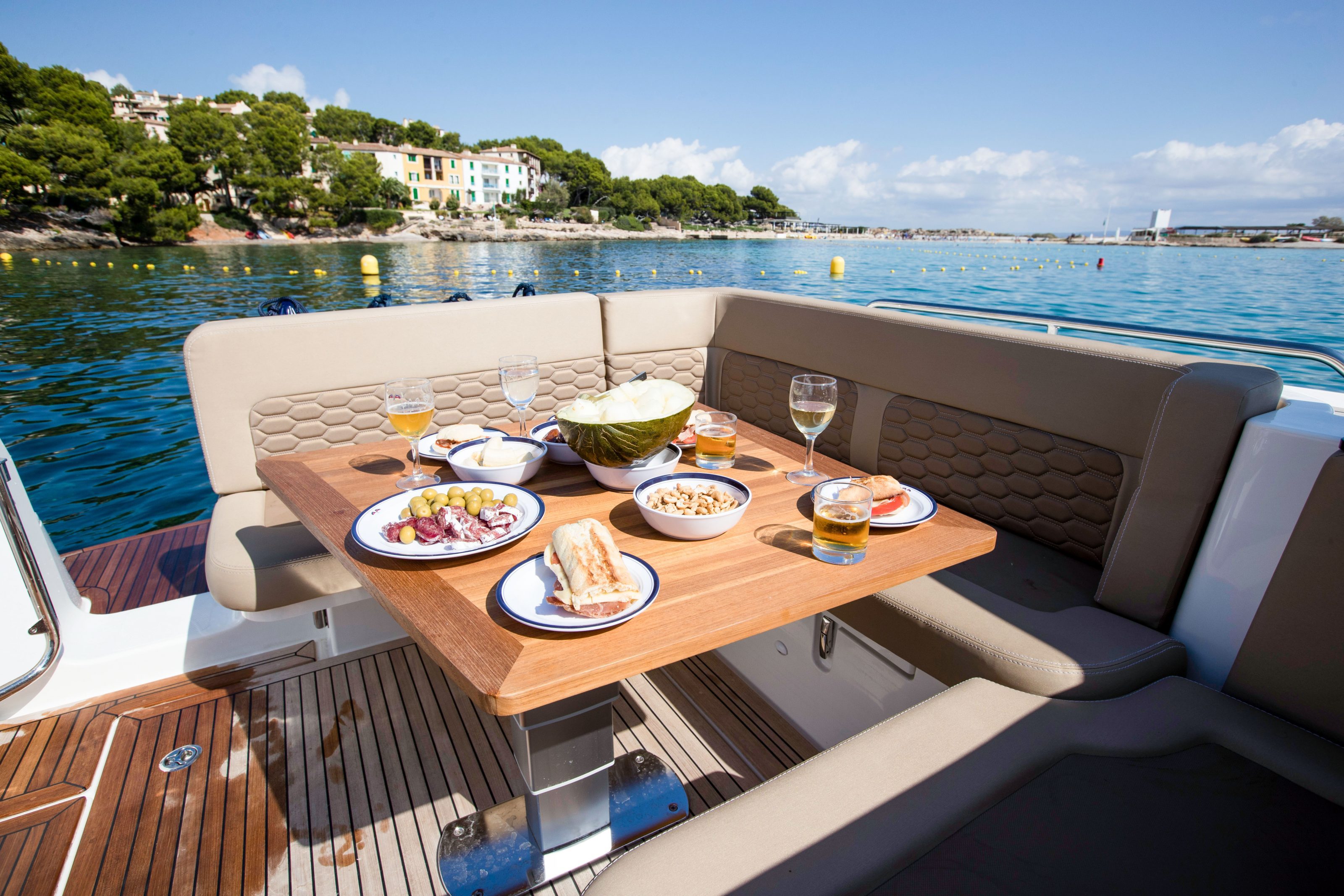 The cockpit features a fully equipped, fiberglass wet bar with 65-liter fridge. The boat feels especially large owing to the integrated bathing platform, after-deck and cockpit being built on the same level. The spacious socializing areas make this boat perfect for entertaining friends.
