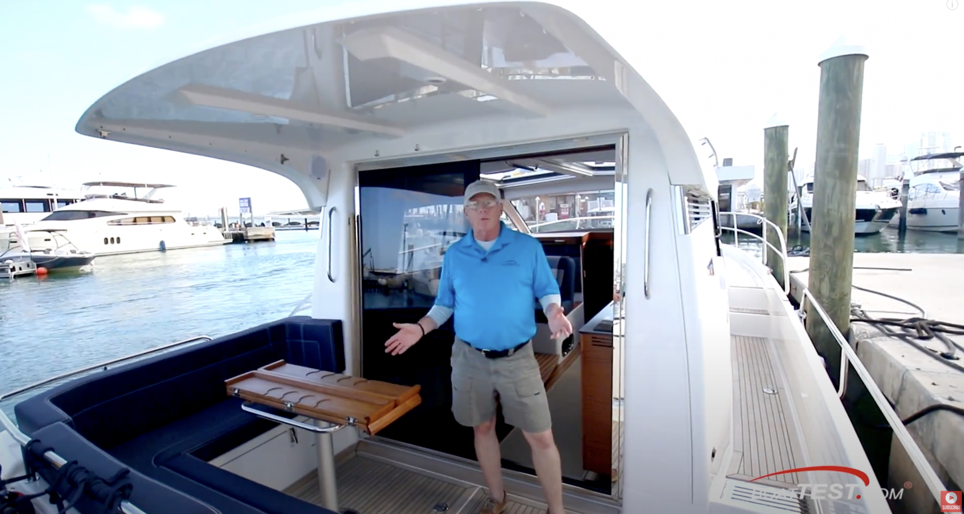 The 365 has a large aft deck leveled with the swim platform