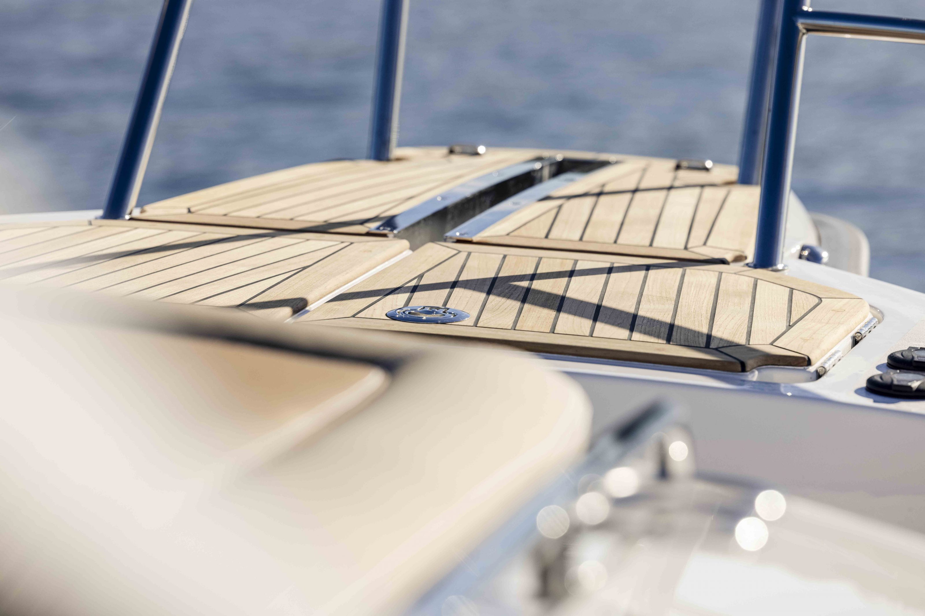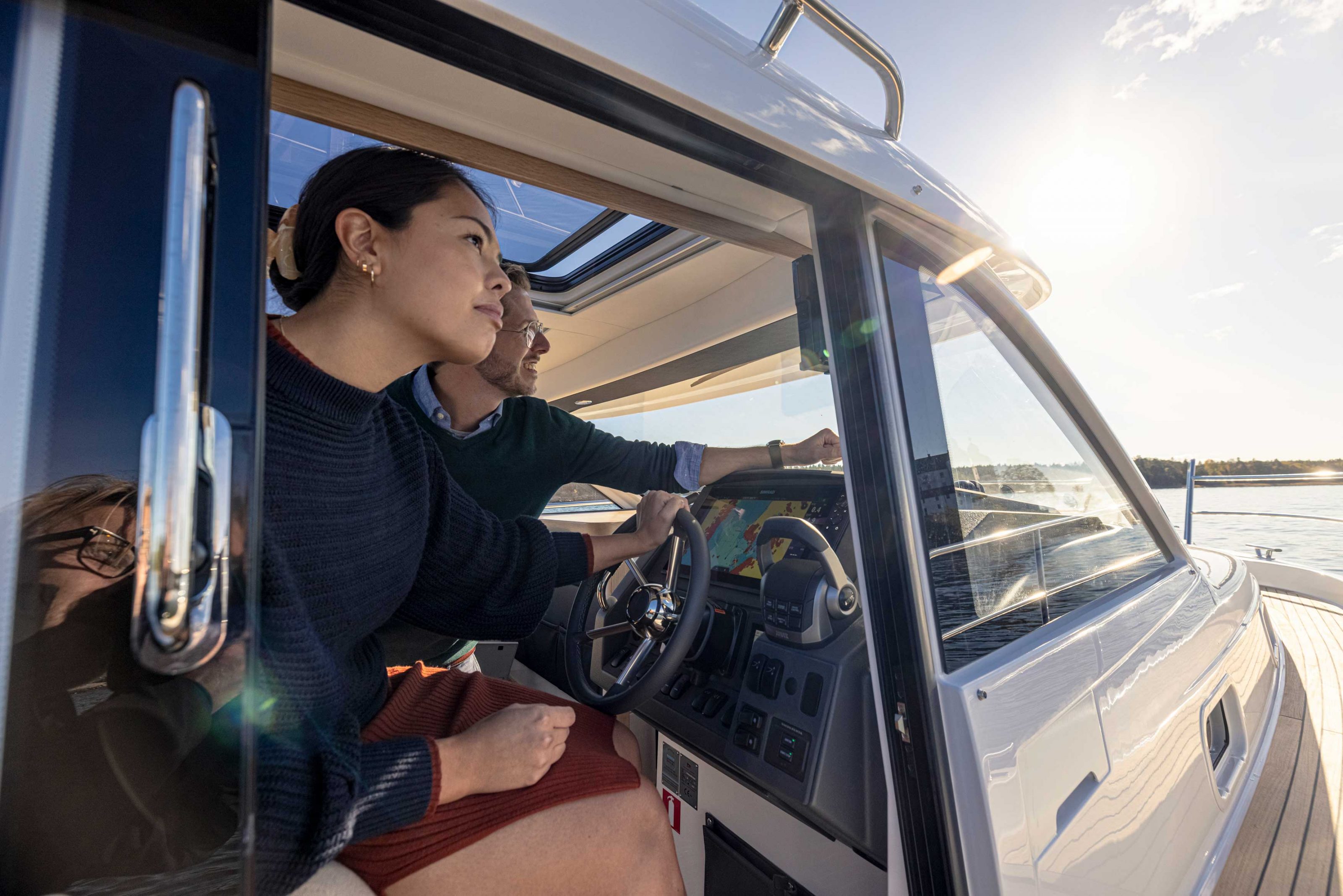 Examples of this functional and improved design are a stronger bumper list, improved visibility from the helm position and salon, a new D-pillar with integrated ventilation, double sunroofs allowing for more natural light in the salon, an extended aft roof for better shelter and easier canopy handling, a new, improved side door and redesigned pulpits with improved functionality and safety.