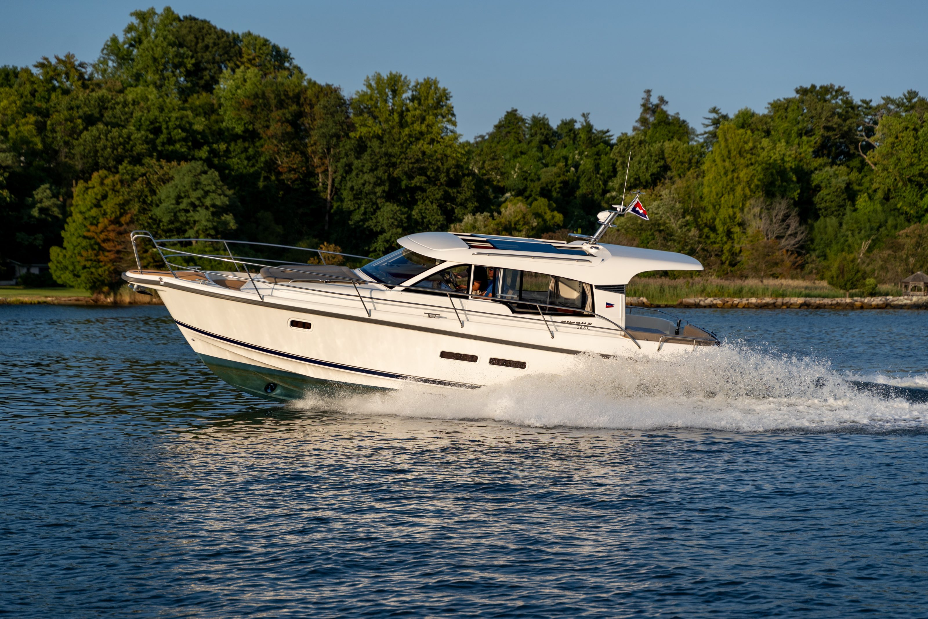 Equipped with a single Volvo Penta D4-260, the 365 is lighter,