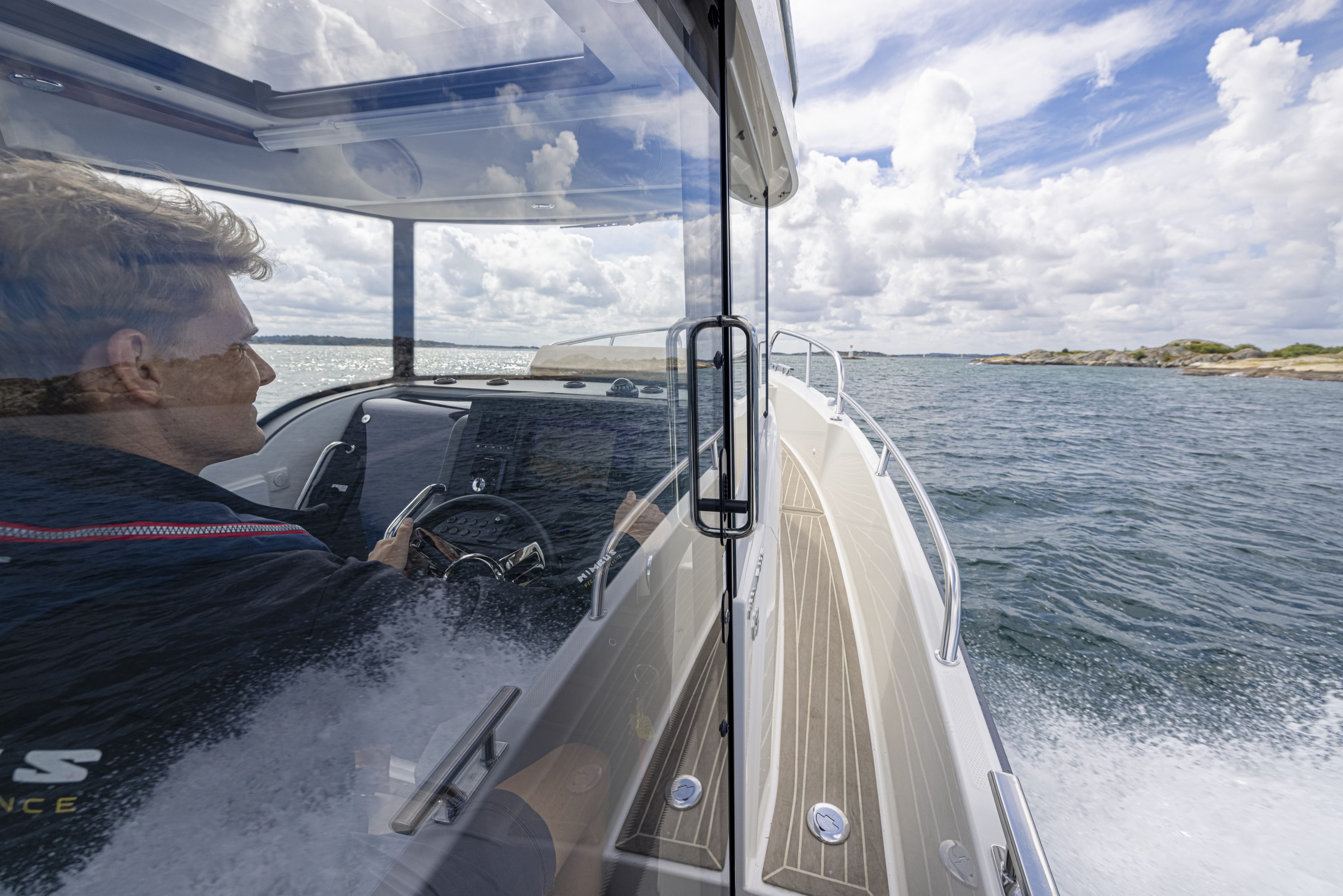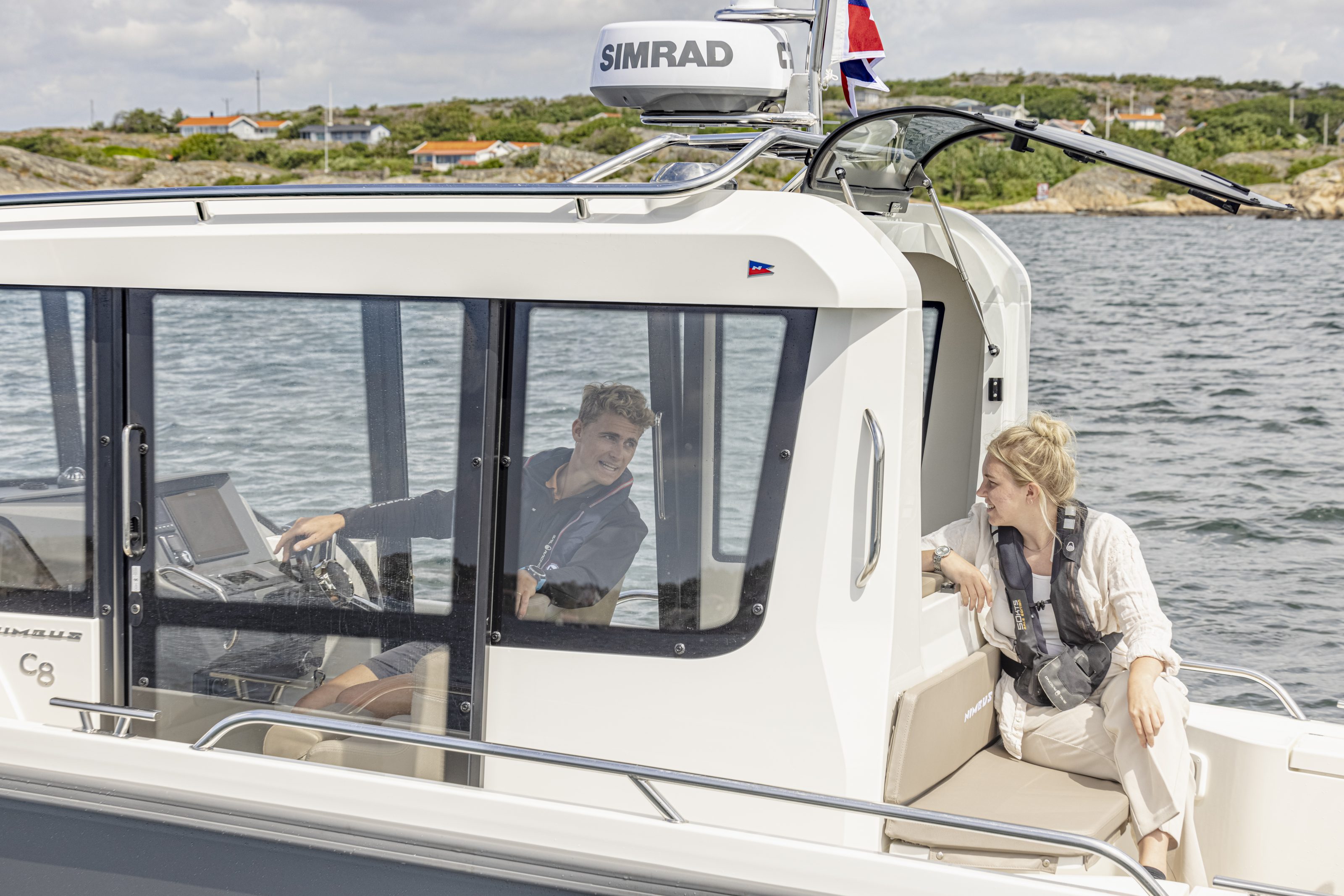 C8 is a flexible and comfortable year-round commuter that works just as well whether you are traveling alone or with company. Despite the smaller size, we have prioritized space that makes it easy to get on or off and move onboard. The trick with the C8 was to build in the same high level of functionality and flexibility as the C9 but in a smaller hull, says Joacim Gustavsson, chief designer at Nimbus Boats Sweden AB