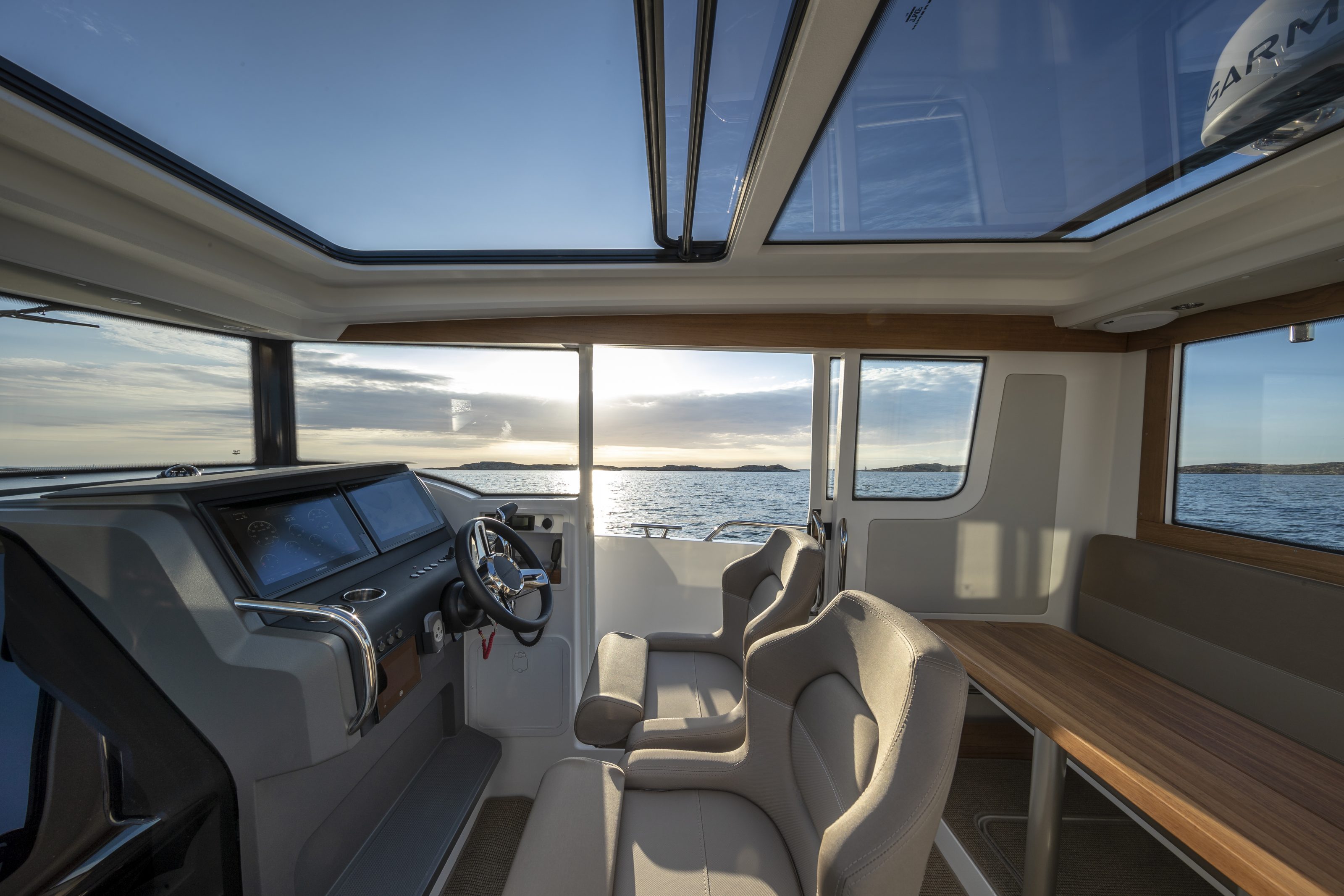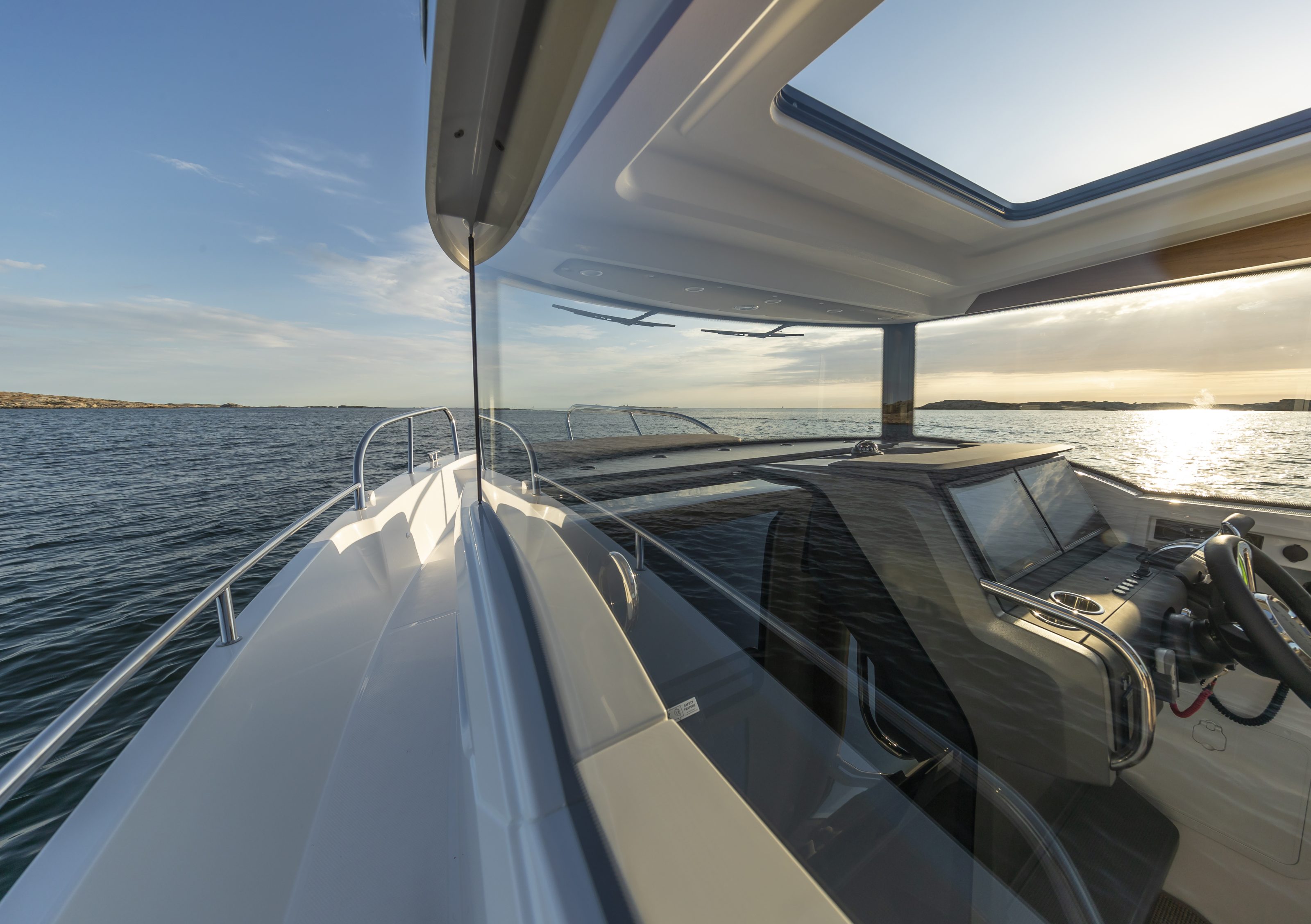 The Nimbus C9 is a boat for connoisseurs of contemporary Scandinavian design; those who appreciate well-thought-out solutions and smart functionality. The spacious cockpit offers splendid natural light, with a large, sliding glass roof hatch and a modern, snug helm position.