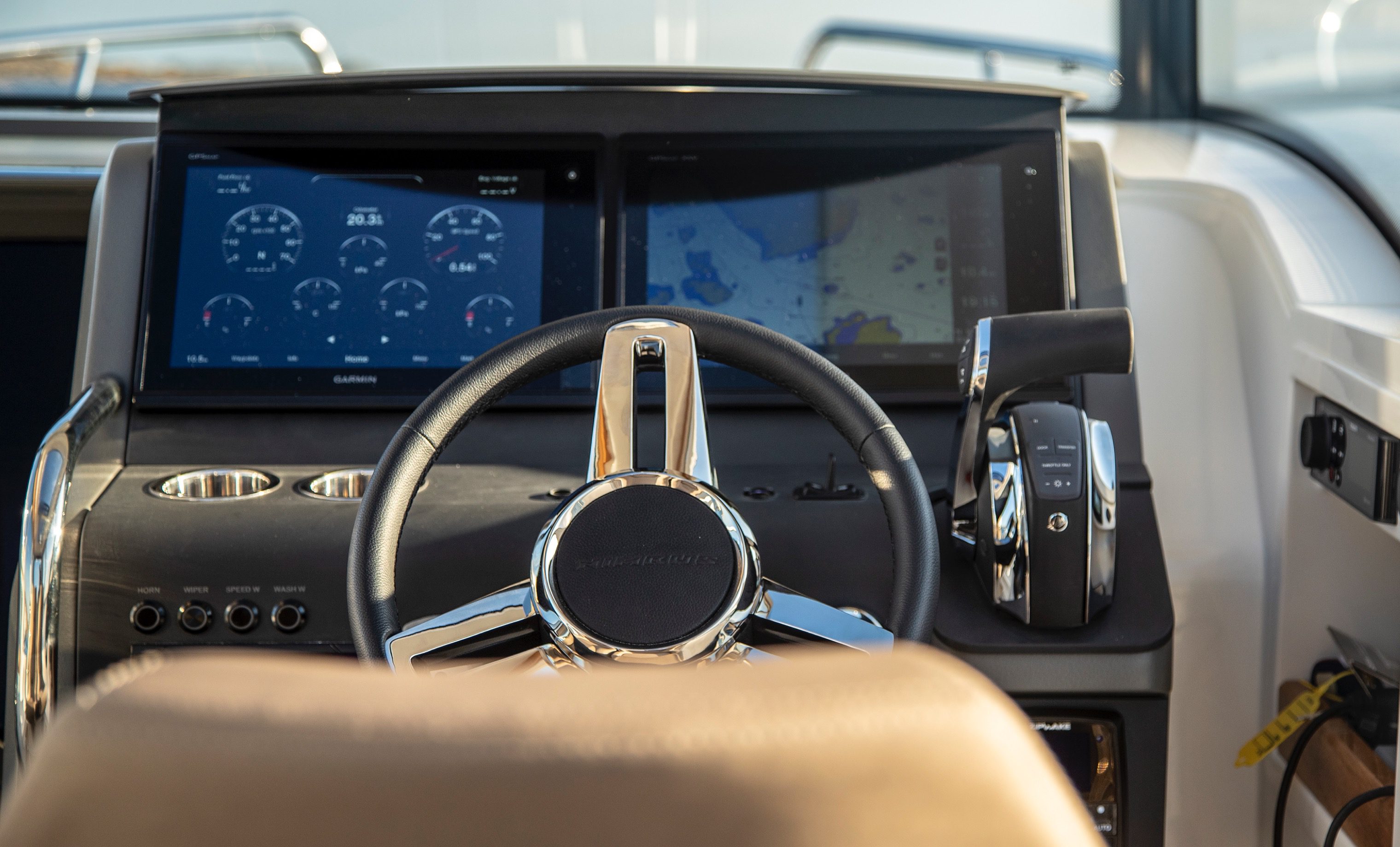 Dashboard can be fitted with 9″, 12″, or twin 12″ plotters