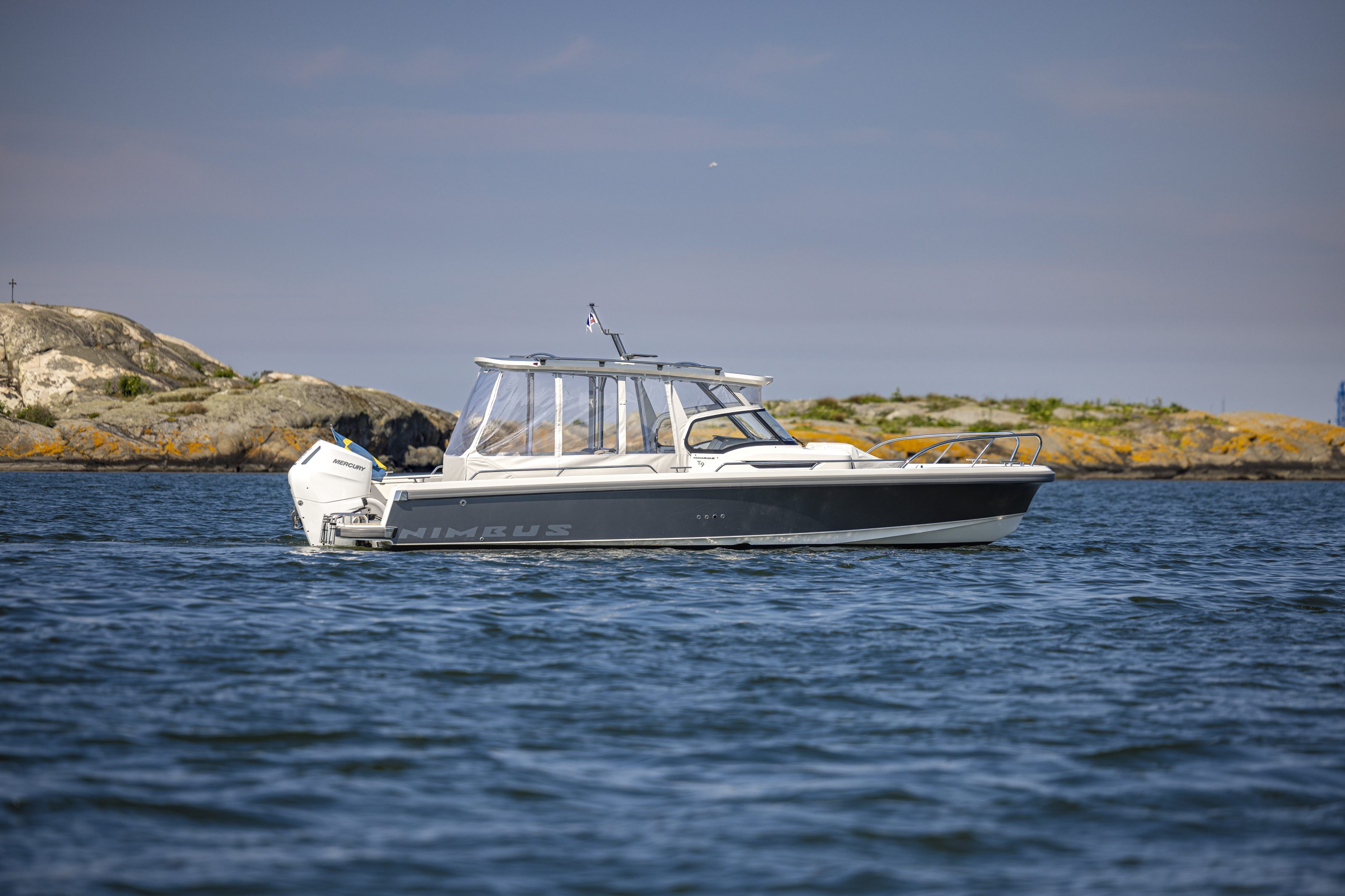 The Nimbus T9 is a nine-meter day boat that offers great opportunities for individual adaption and is intended for all types of day-to-day activities, such as transportation, water sports and leisure activities.