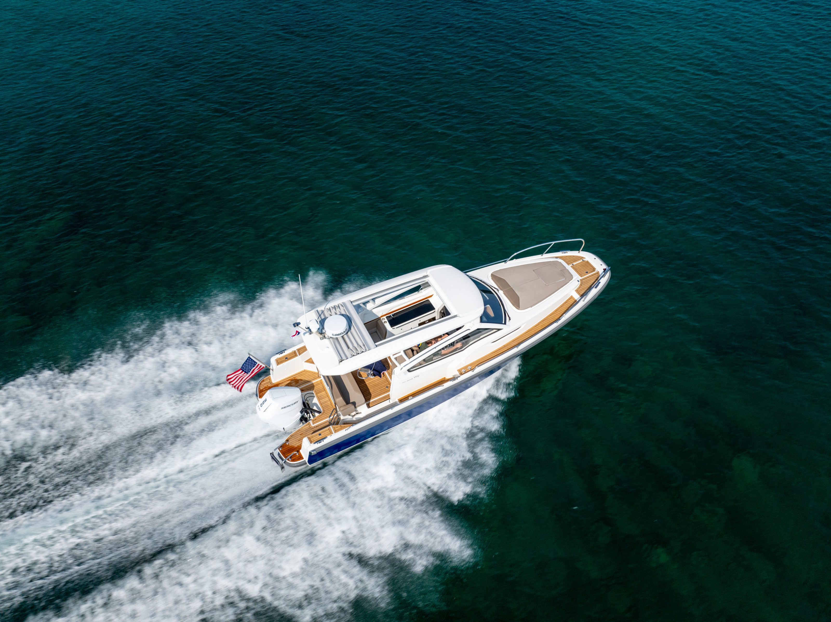 “Our aim was to ensure that the boat was secure and harmonic at all speeds, especially between 20-35 knots, and also have a minimal planing threshold. Those who have test driven the W9 up to now have experienced precisely that. The fact that – due to its excellent balance, stability and well-defined flair – the boat remains extremely dry without excessive spray, only increases the sense of security. It certainly feels as if we’ve succeeded,” says Mats Jacobsson, Technical Director at Nimbus.