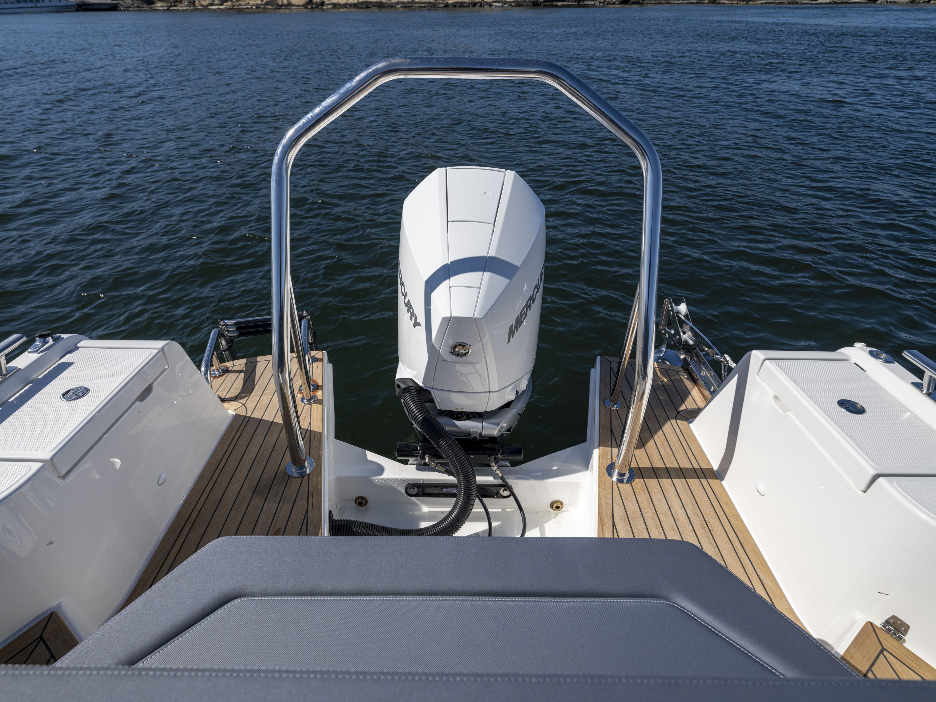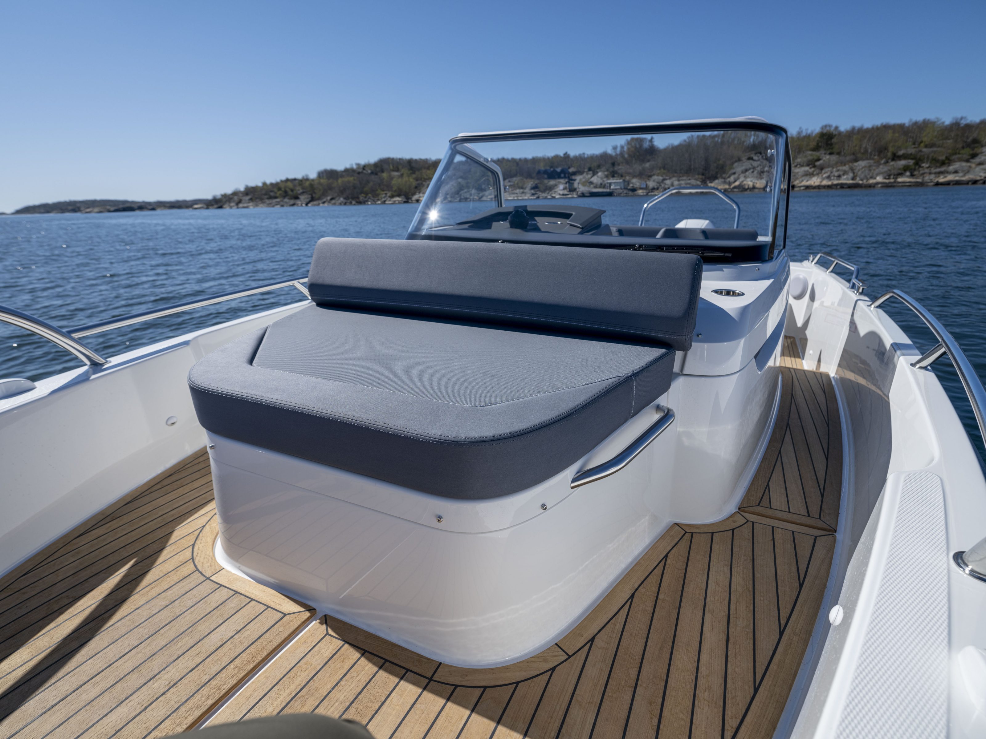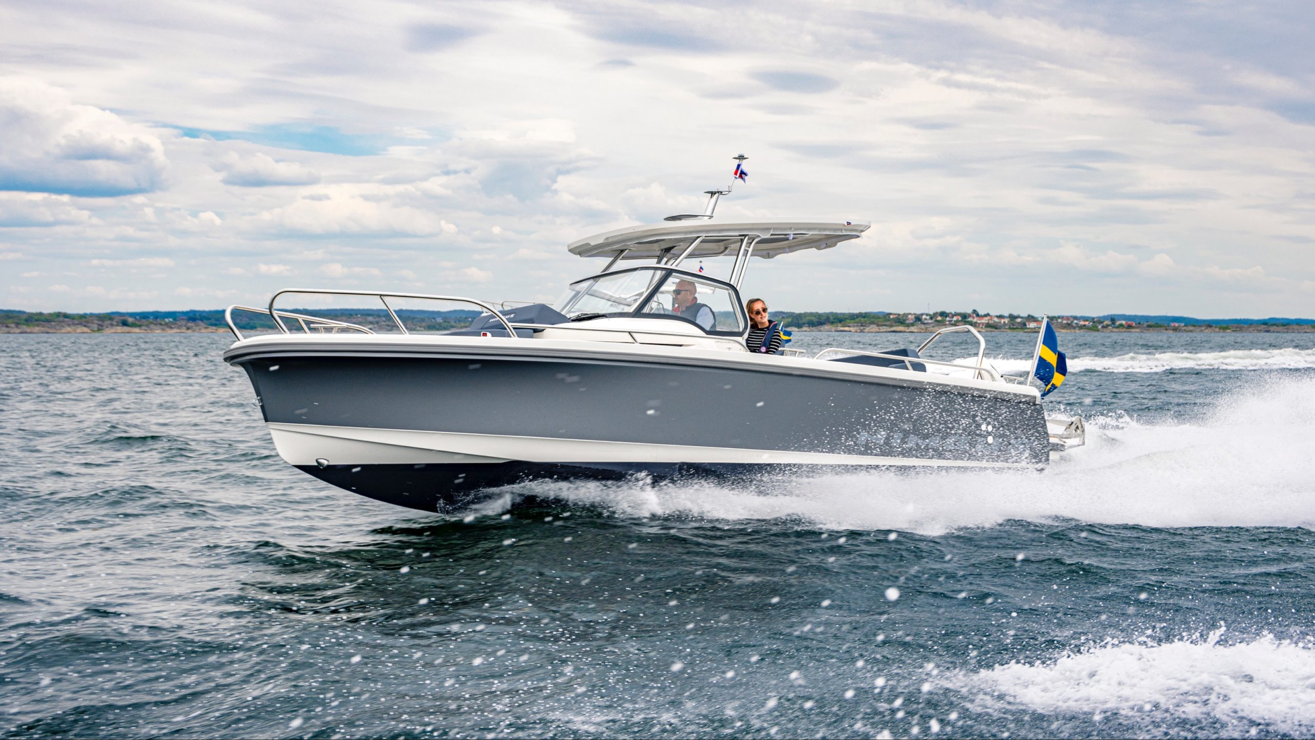 “The polycarbonate roof on the T-top, in combination with the canopy, makes it possible to stay sheltered during the journey, even when the weather takes a turn for the worse. This extends the boating season and expands the areas of use, not least in Scandinavia”, says Jonas Göthberg.