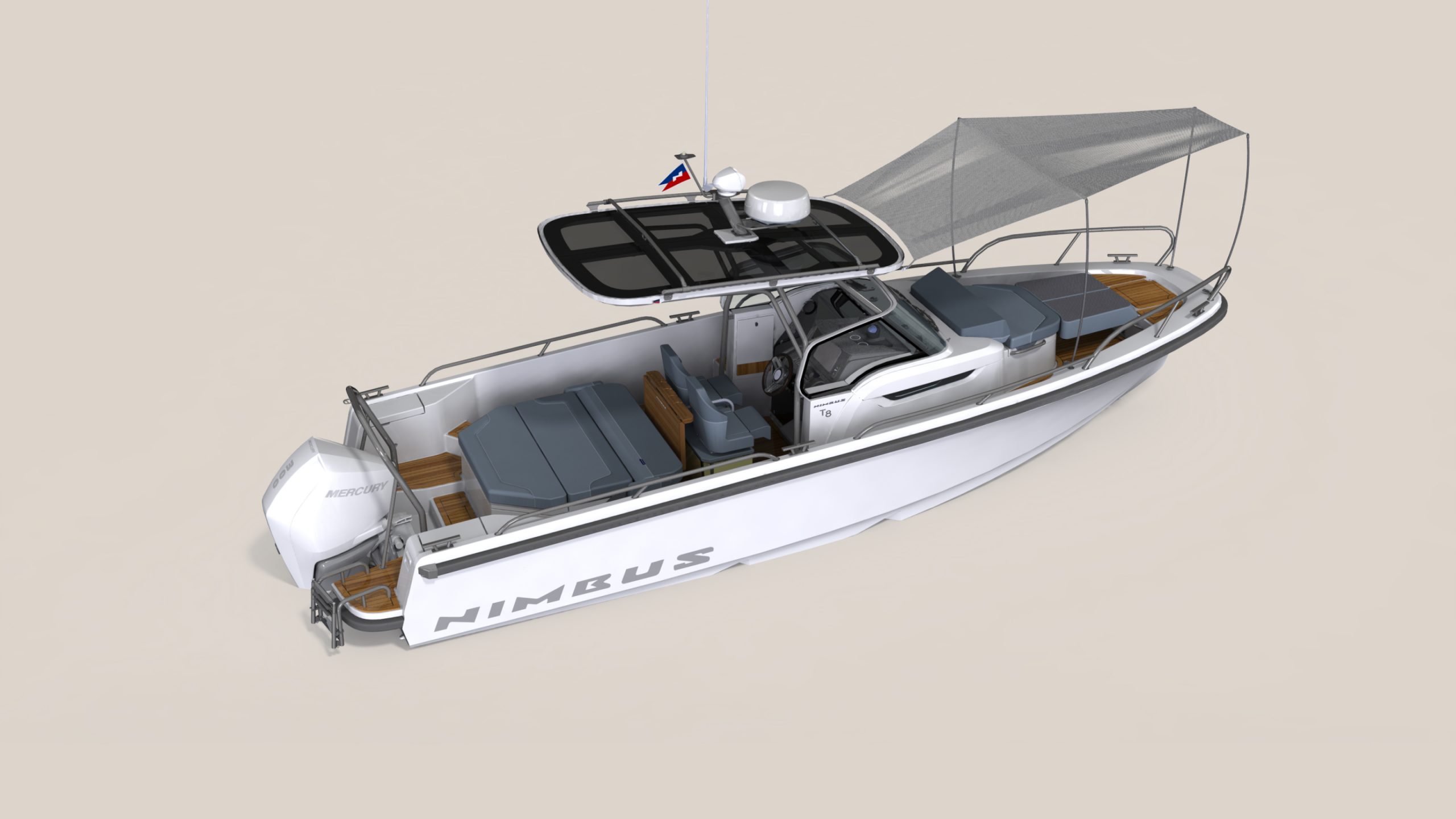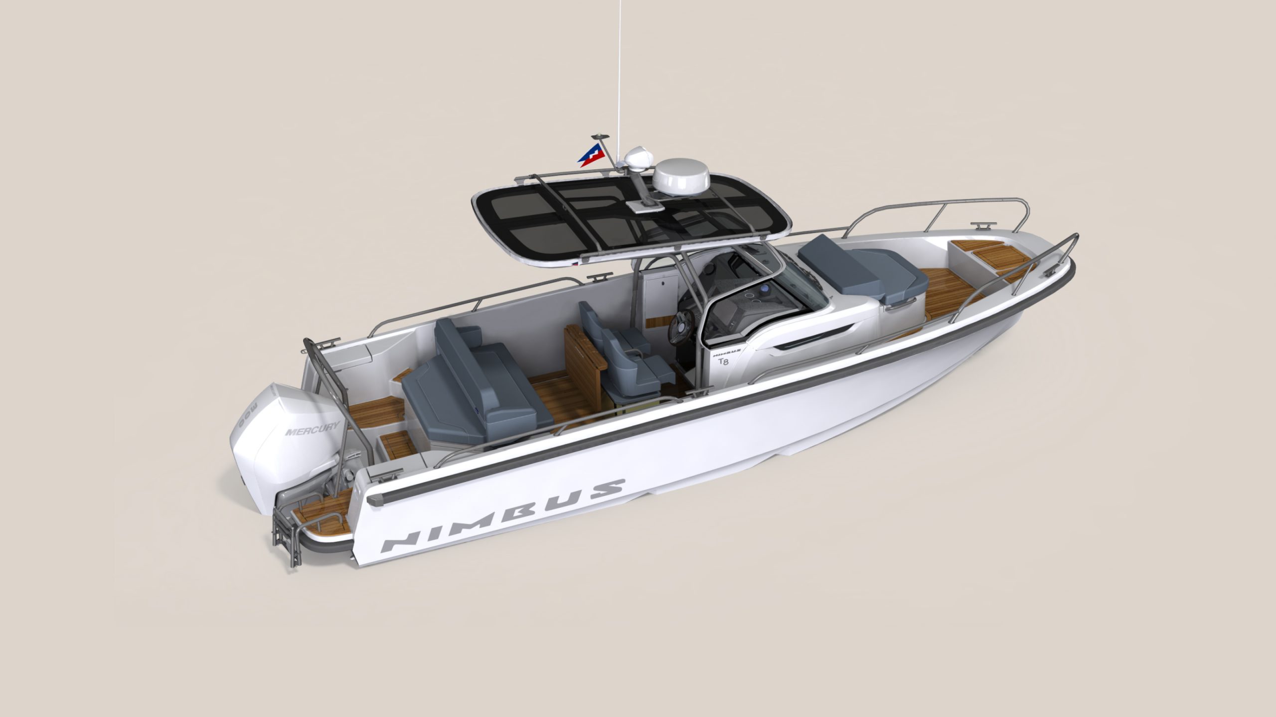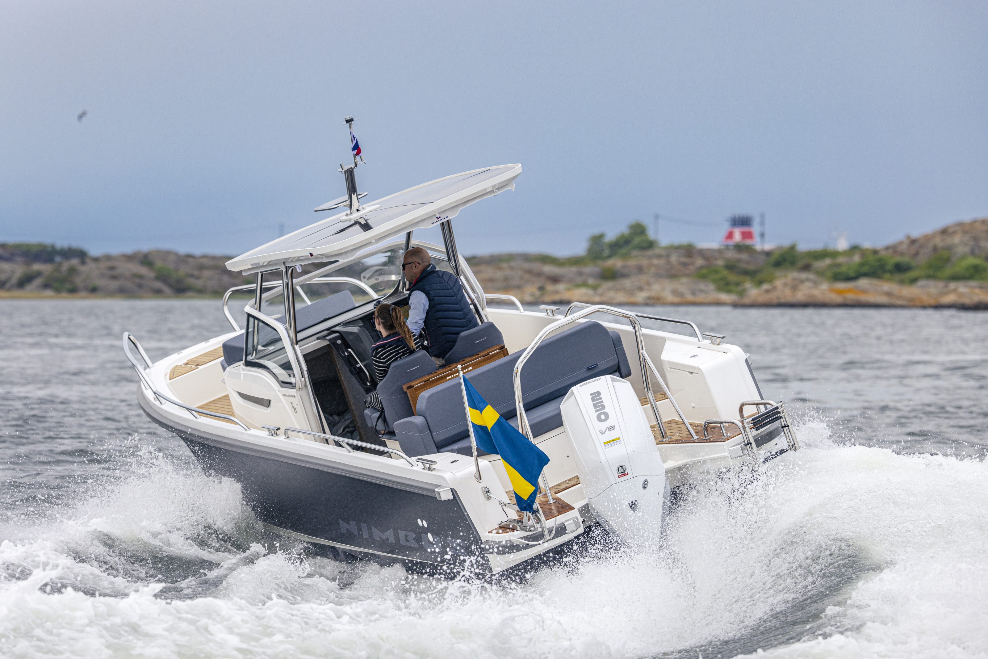 The T8 is a Scandinavian day boat that represents a further evolution of the Nova and R-series. The T8 combines elements of design, functionality and DNA from the 230R, 250R and 26 Nova with Nimbus’ current classic style – a functional day tender for those who appreciate genuine Scandinavian design and value well-considered solutions and comfort