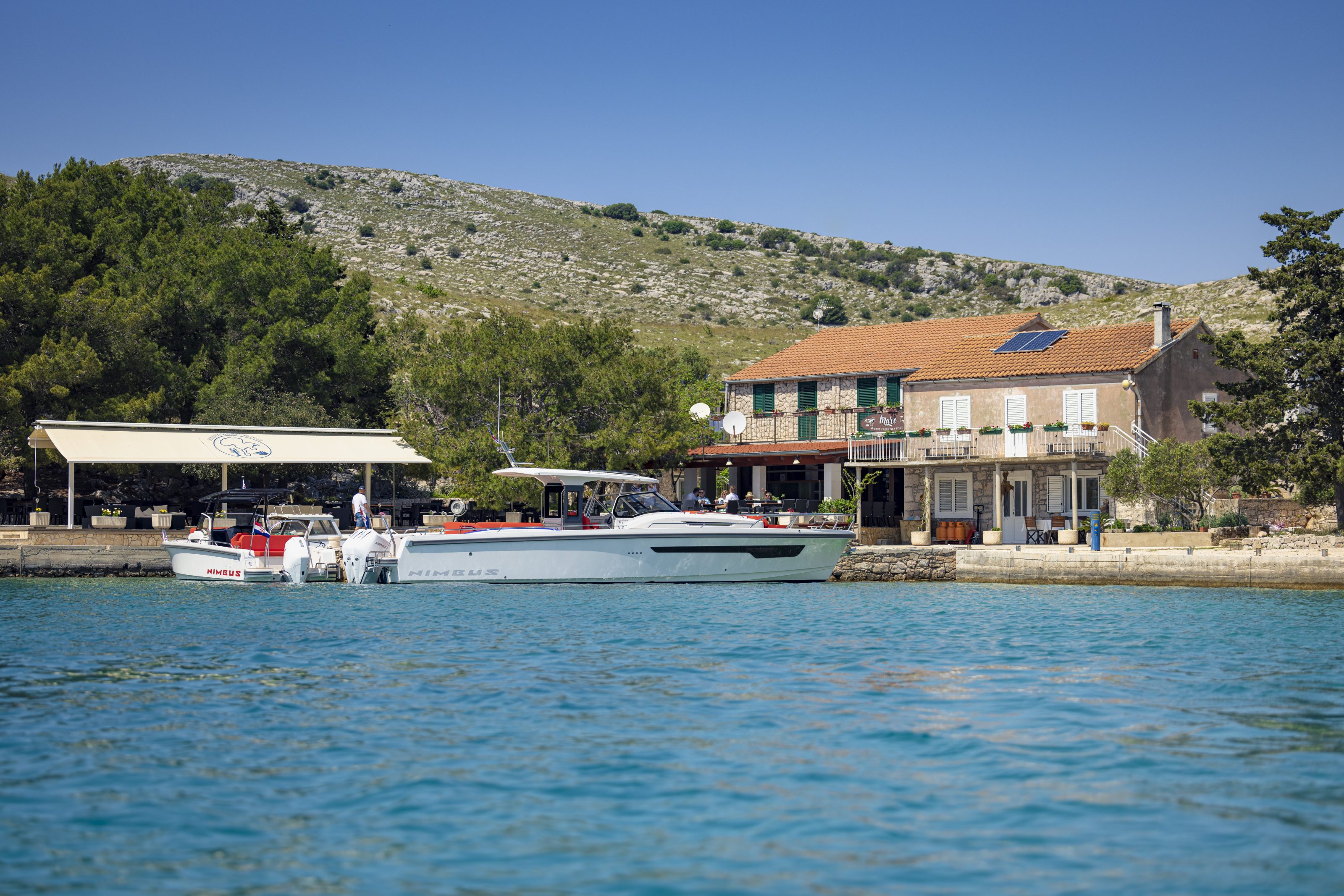 The Nimbus T8 is a genuine, well-equipped, fast day tender with walk-around design that is perfect for day trips and water sports. It has a two-person berth and is an ideal boat for those who appreciate classic Scandinavian design and value functional solutions and comfort.