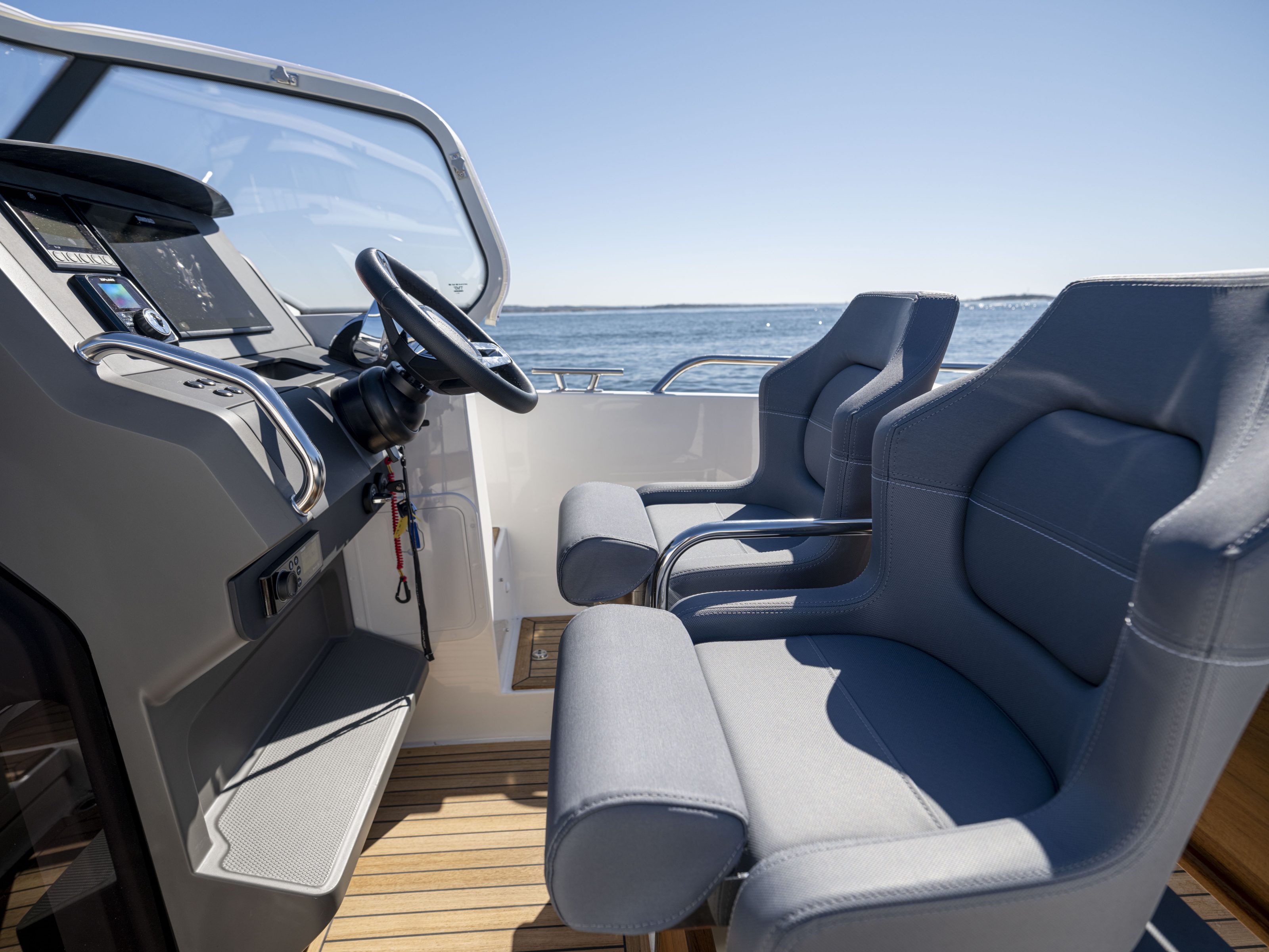 A multifunctional, well-equipped and fast day boat intended for day-to-day activities and water sports, with overnight accommodation for two – a worthy successor to the Nova and R-series.