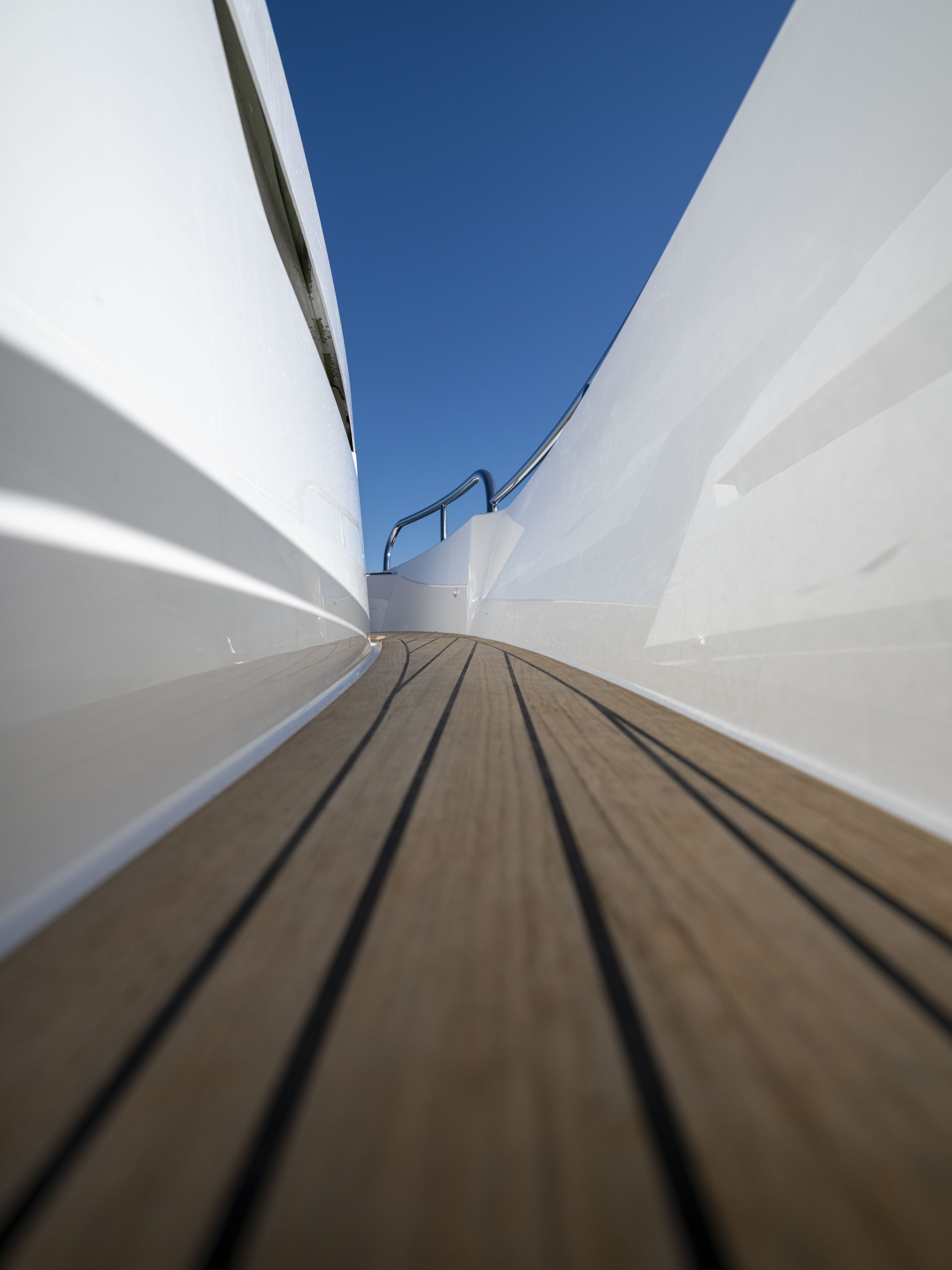 On the foredeck is a sunbed which provides lounging space for 4 people. The foredeck also conceals a large loading hatch with access to the cabin for easy loading.