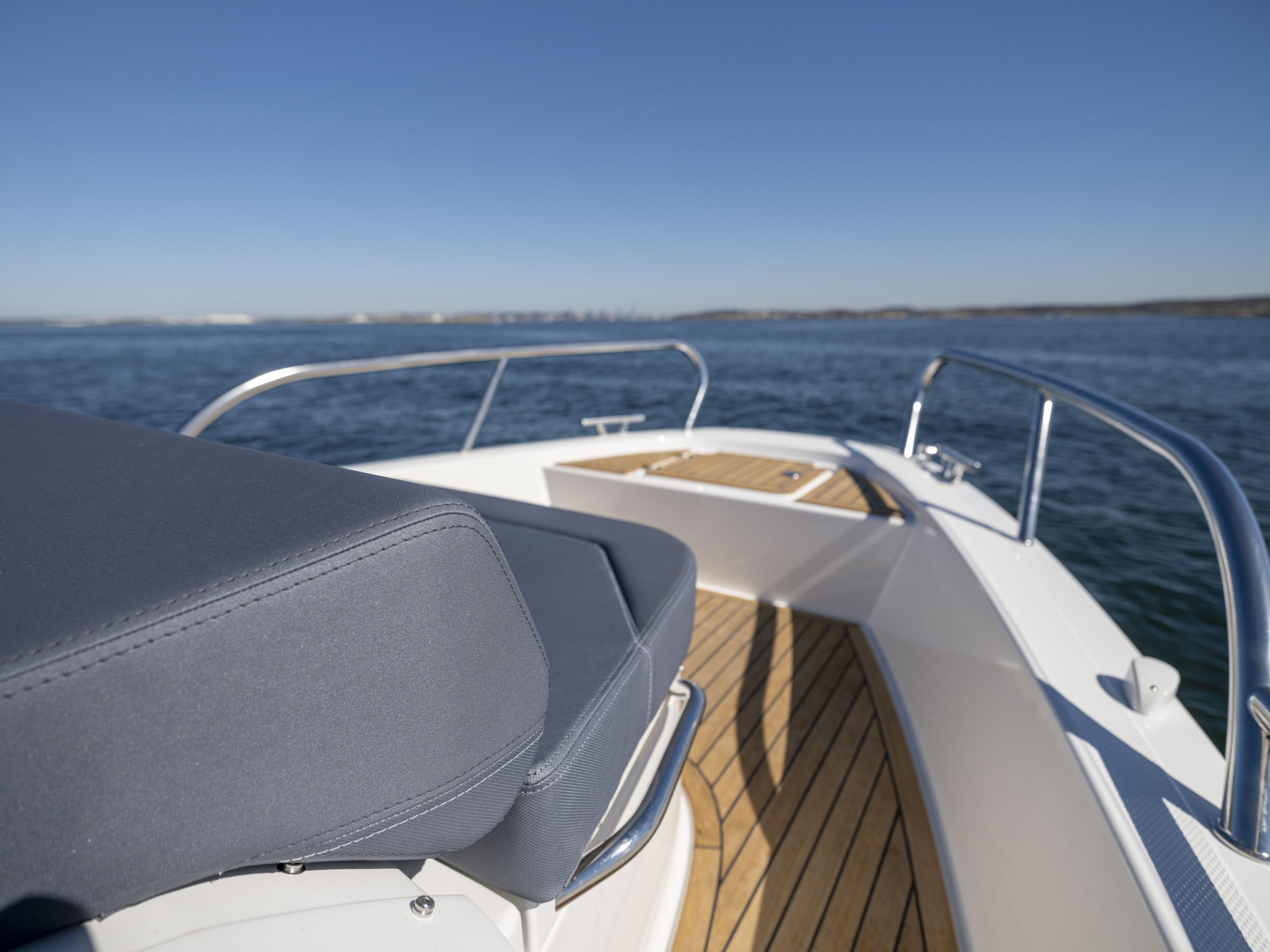 A new feature of the T8 is that it can be equipped with a robust T-top with a polycarbonate roof that provides sun protection without detracting from the open-air feel you want from a day boat.